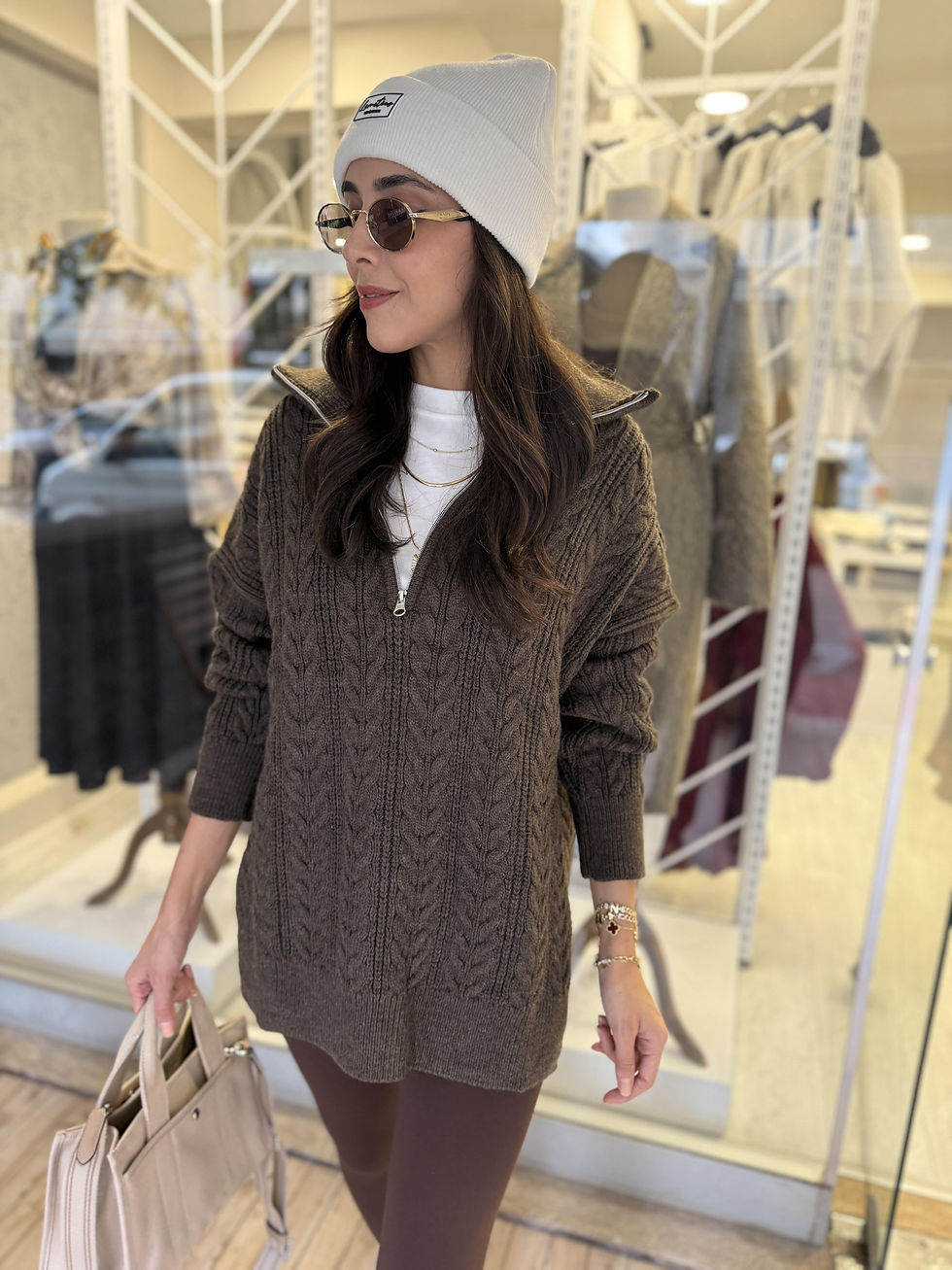 SAÇ ÖRGÜ FERMUAR DETAYLI KAZAK ACI KAHVE