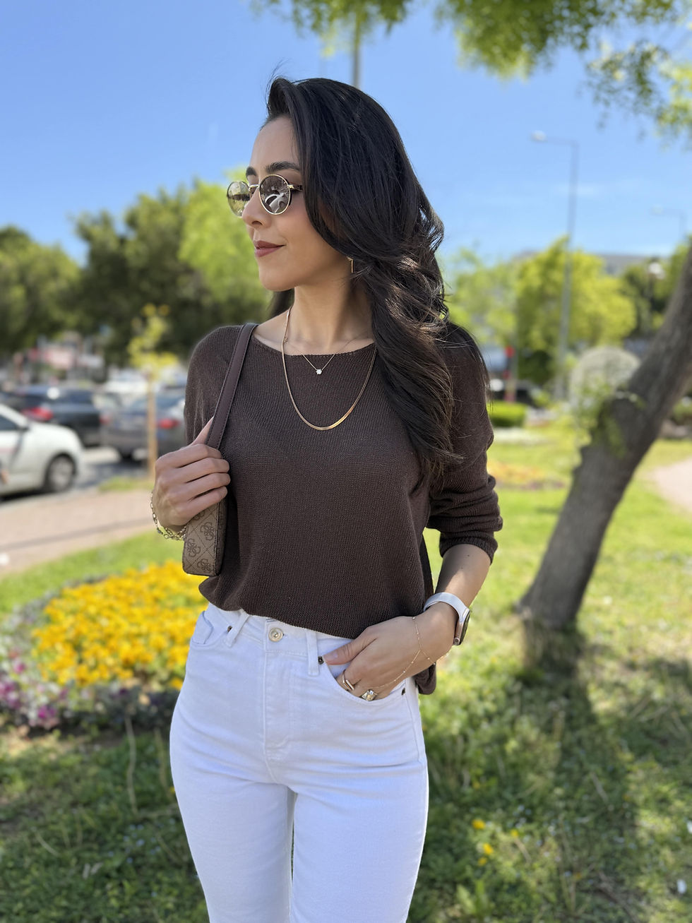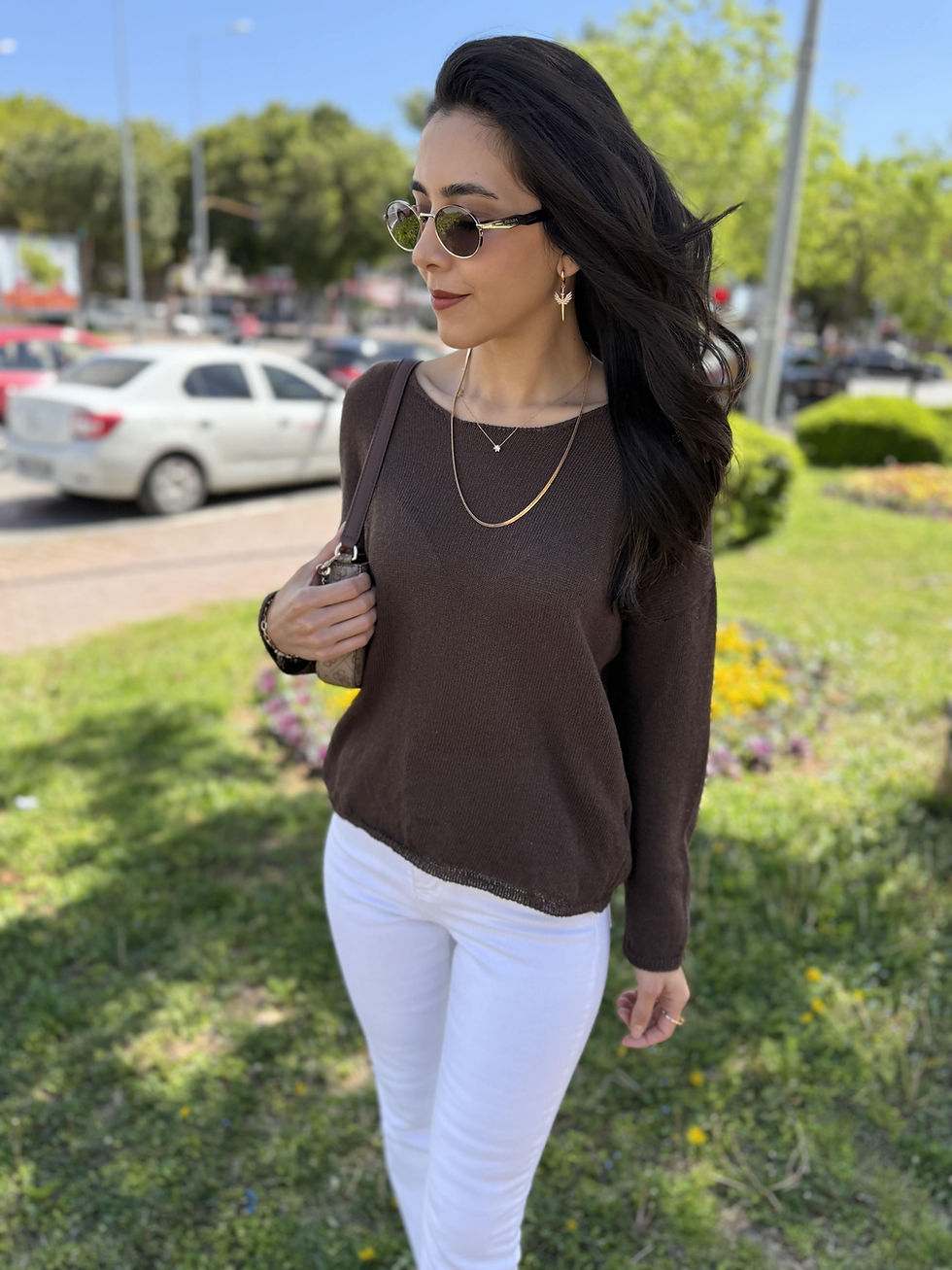 MADONNA YAKA FERMUARLI TRİKO KAHVE