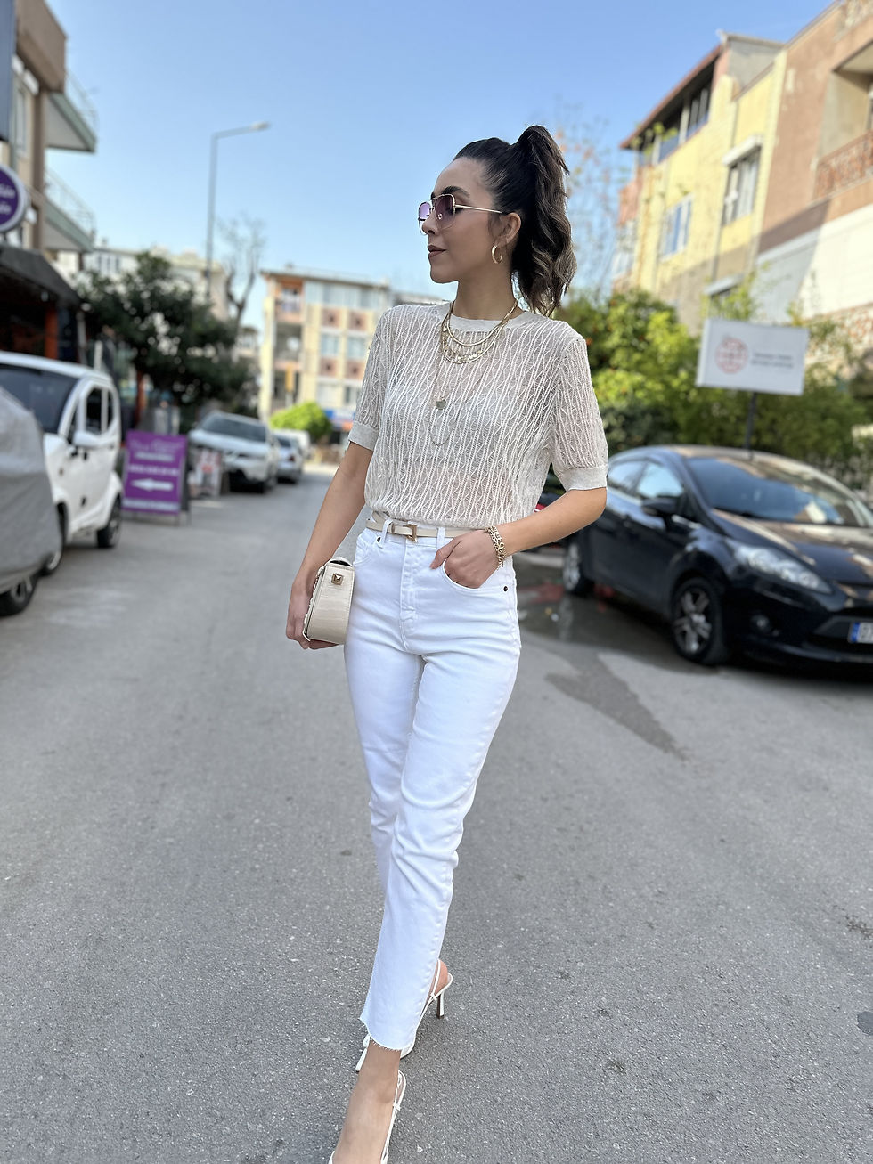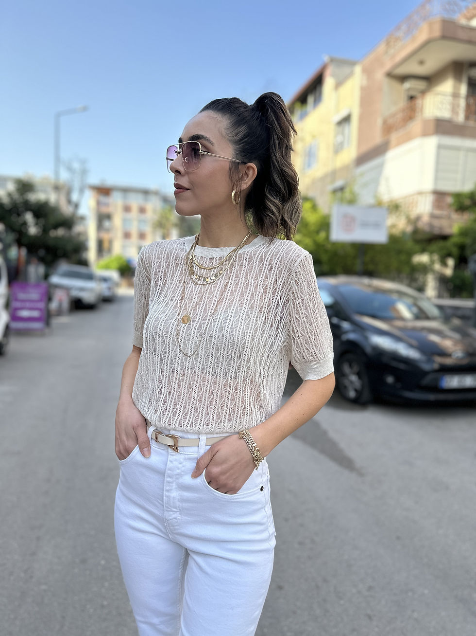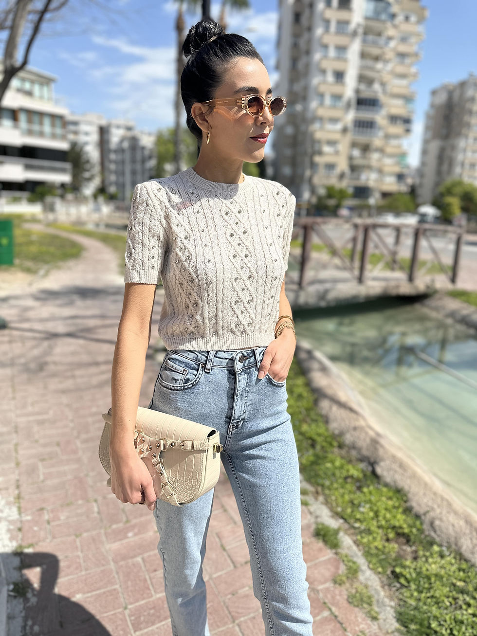 TAŞ ZIMBALI İNCE TRİKO KREM
