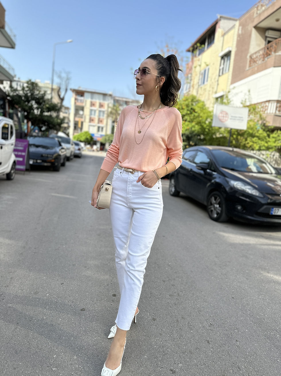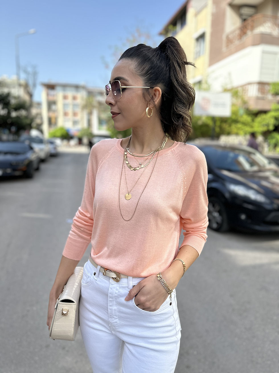 BİSİKLET YAKA İNCE TRİKO AÇIK PEMBE