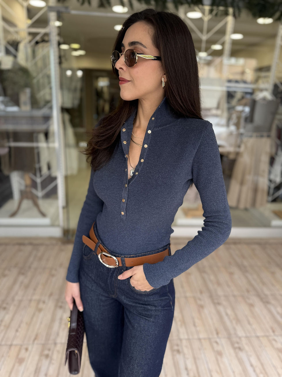 BİSİKLET YAKA KOLLARI GOLD DETAYLI TRİKO