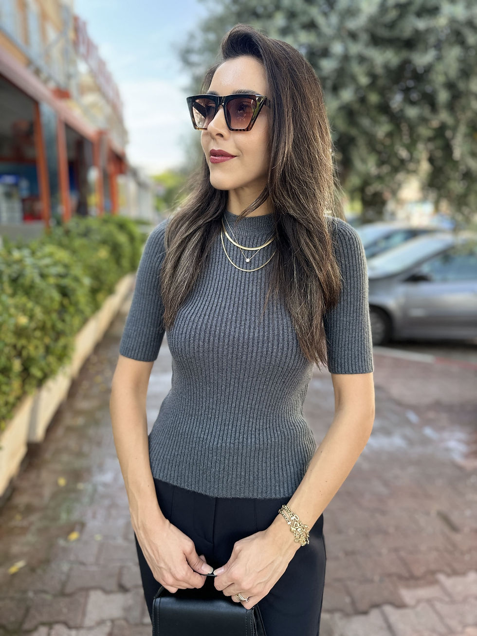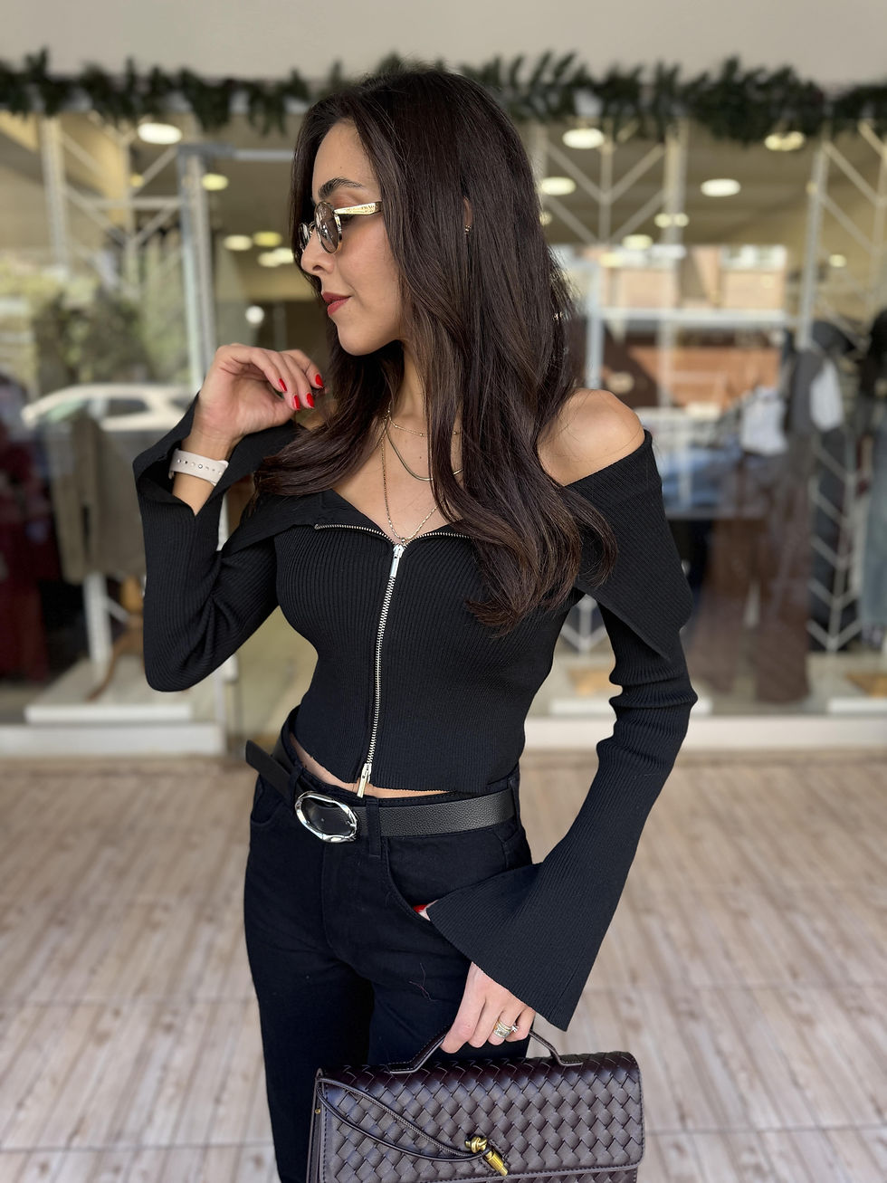 MADONNA YAKA FERMUARLI TRİKO SİYAH