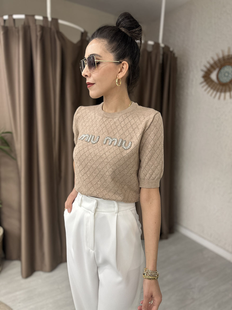 TAŞLARI ZIMBALI MİU TRİKO EKRU