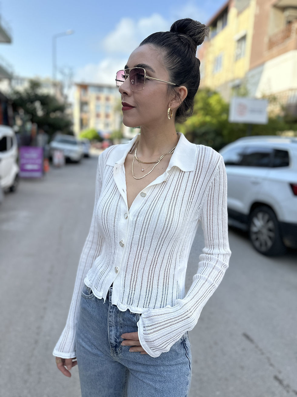 POLO YAKA TRANSPARAN DÜĞMELİ TRİKO