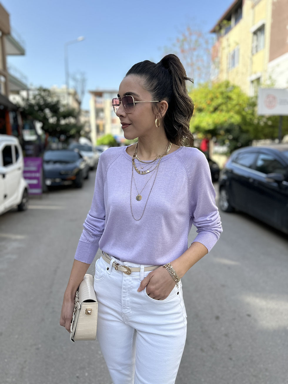 BİSİKLET YAKA İNCE TRİKO LİLA